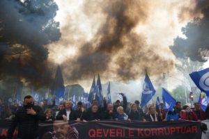Во текот на протестите кои овој викенд се одржаа во Тирана, демонстранти носеле маски, палеле бакли и го гаѓале кордонот...